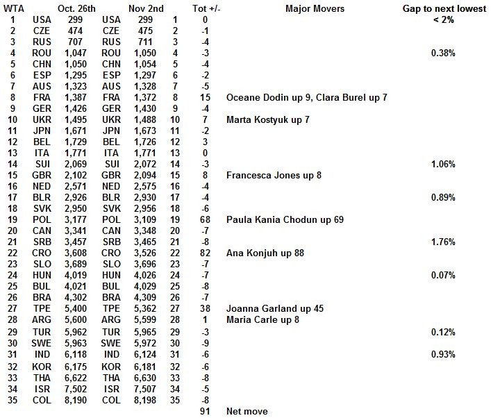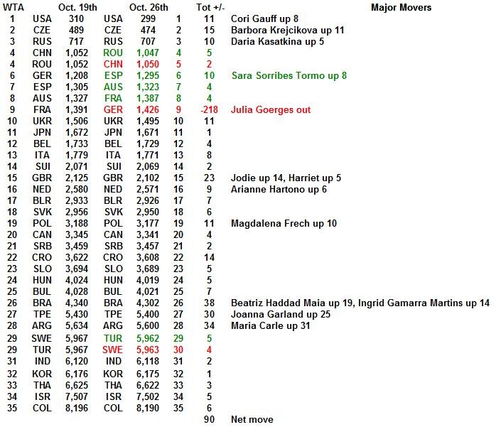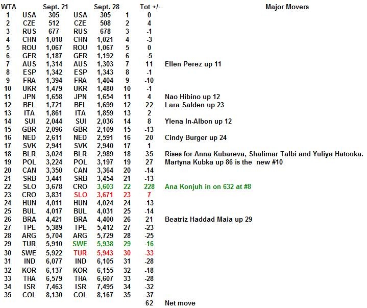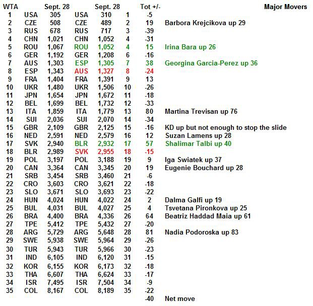 With Strasbourg completed and RG starting tomorrow, the 28/09 WTA rankings are out early.