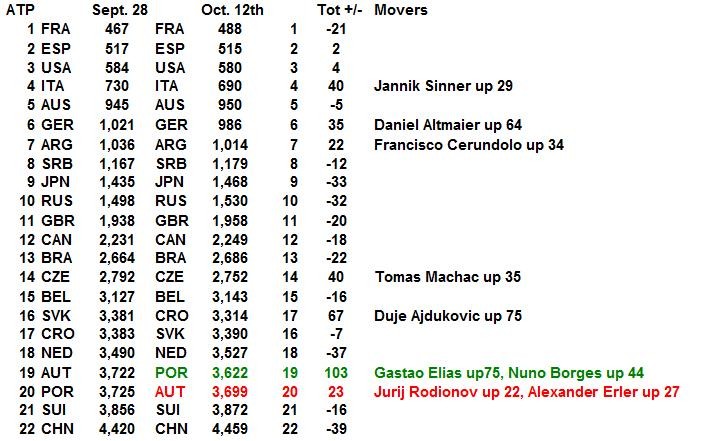 For the ATP, with no additional counting points for our top 10, we are down 14 to 1938.