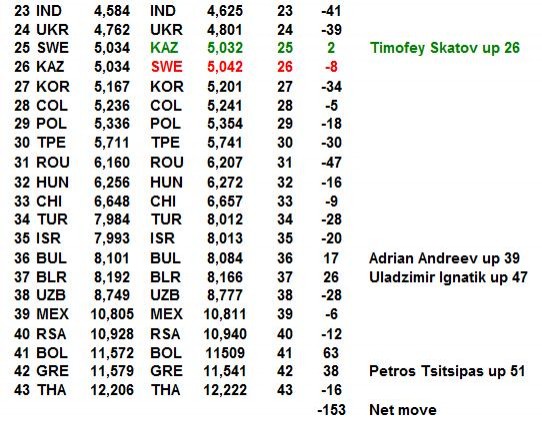 But USA and Italy are also close to both of them and each other. Italy are clearly the movers and it will be interesting to see if they can claim 3rd place before too long and put pressure on the top as well - probably too far a gap before end of 2020 season but not inconceivable to see the gap close early 2021.