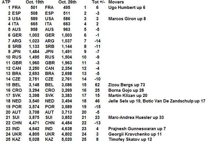 No idea how the numbers will work out but I got the feeling that Italy and Argentina were two of the best countries in the men, in terms of what they chalked up at RG.