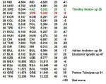 GB drop 13 to 2109. Only Fran added points and rose by just one place, albeit to another CH of 255.