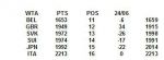 Yay, Paul Jubb, now on a live 21 points after beating Istomin in Eastbourne, will displace Alex Ward ( 20 points ) from #10. Prospects must be good that over the coming months he can push on to quite a lot higher points than the 30 points that Alex held the #10 position with for a long time. Next ahead currently is #9 Brydan on 66 points. Brydan is live WR 354, close on 100 places ahead of Paul's new mark which should be around WR 450. So hopefully Paul can indeed push up that #10 ranking much further and with it our overall top 10 score.