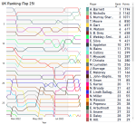 September's GB Top25 movers and shakers are Ali up +3 to GB#9 followed by Freya and Emilie up +2 to GB#12 and GB#20. Going down -4 places was Eden to GB#13, followed by Lily down -2 to GB#15.