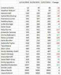Well done for the latest figures. I just need all the Brits to keep improving - I have the right players for 9 out of 10 and the right order for the top 5 - unfortunately that is only half the picture - my glass was half full, as always, with some strong neat spirit no doubt, and I have massively over-estimated every Brit's ranking. I am sure lots of others have done exactly the same.