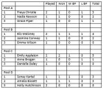 With Grace beating Nadia in three sets, all three players in Pool A finish on three points. Not sure how they will seperate them as they are equal on matches and sets won - so must be down to games won, in which case I make it Grace 23, Freya 21 and Nadia 19