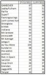 1 Cam 24 2 Dan 34 3 Andy 65 4 Liam 120 5 Jack 212 6 Jay 220 7 Ryan P 228 8 Paul Jubb 282 9 Aidan 295 10 Anton 340