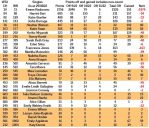 Eliz's 3 scores (31+18+5) give a gain of 54 which doesn't match the table. I added the Shrewsbury score wrongly missed a round off. I'll corrrect it next week
