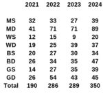 Seems like it is the mens doubles and junior girls that are a little slower out of the blocks this year. Or more relevantly, mens doubles was a very quick start in 2024