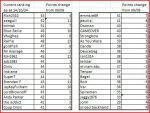 So I will produce the final table based on the 09/12 rankings, and call the men's at the same time.
