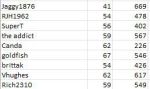 OK. Here is a brief summary of entries received. I still have to check it all and will post any updates in around 10 days time (as I will be away and without my laptop). Sorry about the break in the table - I can't fit it all on one screen.