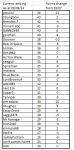 With the end of the far-east season for the ATP tour it seemed appropriate to run an update. Most people have dropped a lot of points, probably due to players like Liam not playing and dropping down the rankings. I was sufficiently surprised at the results to run a few checks, but haven't found anything amiss yet. A glance at the ATP rankings shows a lot of movement lower down the rankings as well.